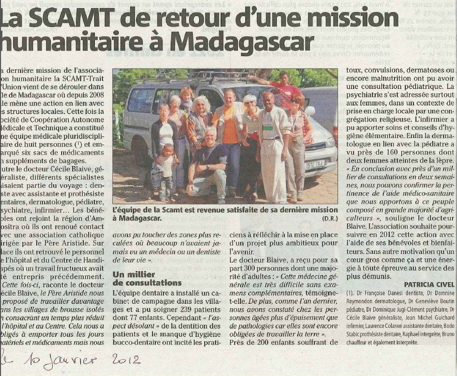 Nous bénéficions à chaque retour de mission d'un article dans notre quotidien régional.